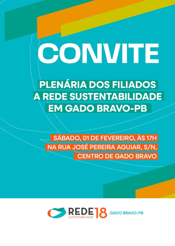 A direção municipal da Rede Sustentabilidade no município de Gado Bravo convoca os filiados devidamente habilitados ao exercício de voto para comparecerem a Plenária Rede, que irá acontecer no dia 1º de fevereiro, às 17h na rua José Pereira Aguiar, s/Nº, Centro. A Rede A Rede Sustentabilidade é fruto de um movimento aberto, autônomo e […]