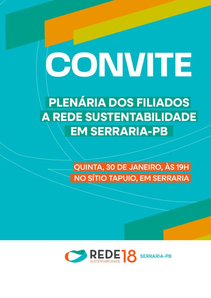 A direção municipal da Rede Sustentabilidade no município de Serraria convoca os filiados devidamente habilitados ao exercício de voto para comparecerem a Plenária Rede, que irá acontecer no dia 30 de janeiro, às 19h no Sítio Tapuio.